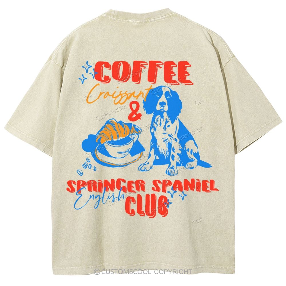 Coffee Croissant English Springer Spaniel Club Unisex Fit Washed T-Shirt Customscool