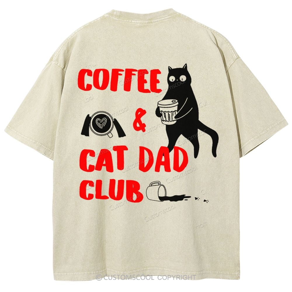 Coffee & Cat Dad Club Unisex Fit Washed T-Shirt Customscool