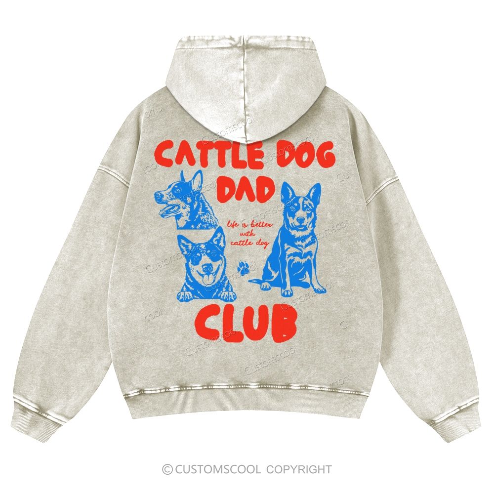 Cattle Dog Dad Club Casual Washed Hoodie Customscool
