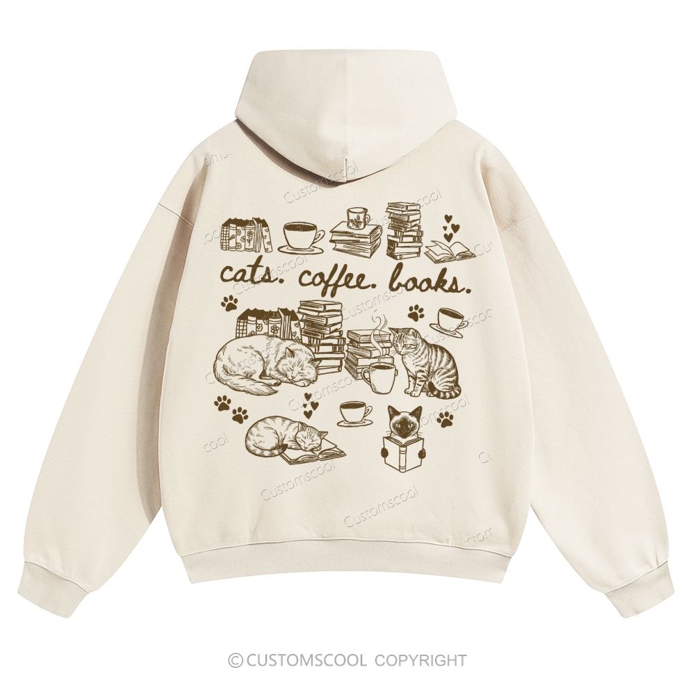 Cats Coffee Books Solid Color Hoodie Customscool