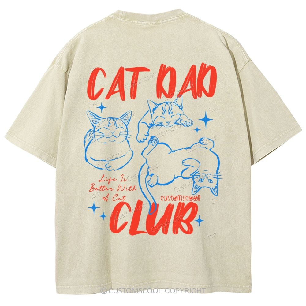 Cat Dad Club Unisex Fit Washed T-Shirt Customscool