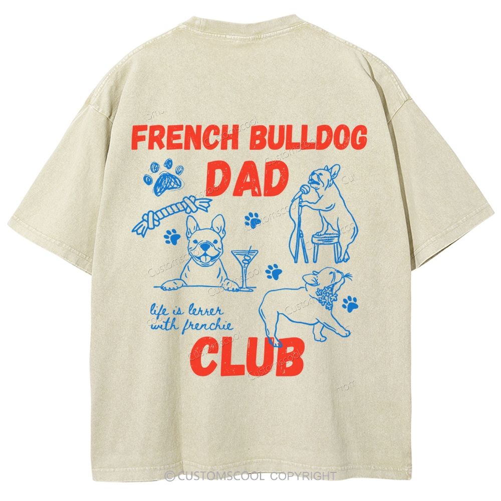 Bulldog Dad Club Unisex Fit Washed T-Shirt Customscool