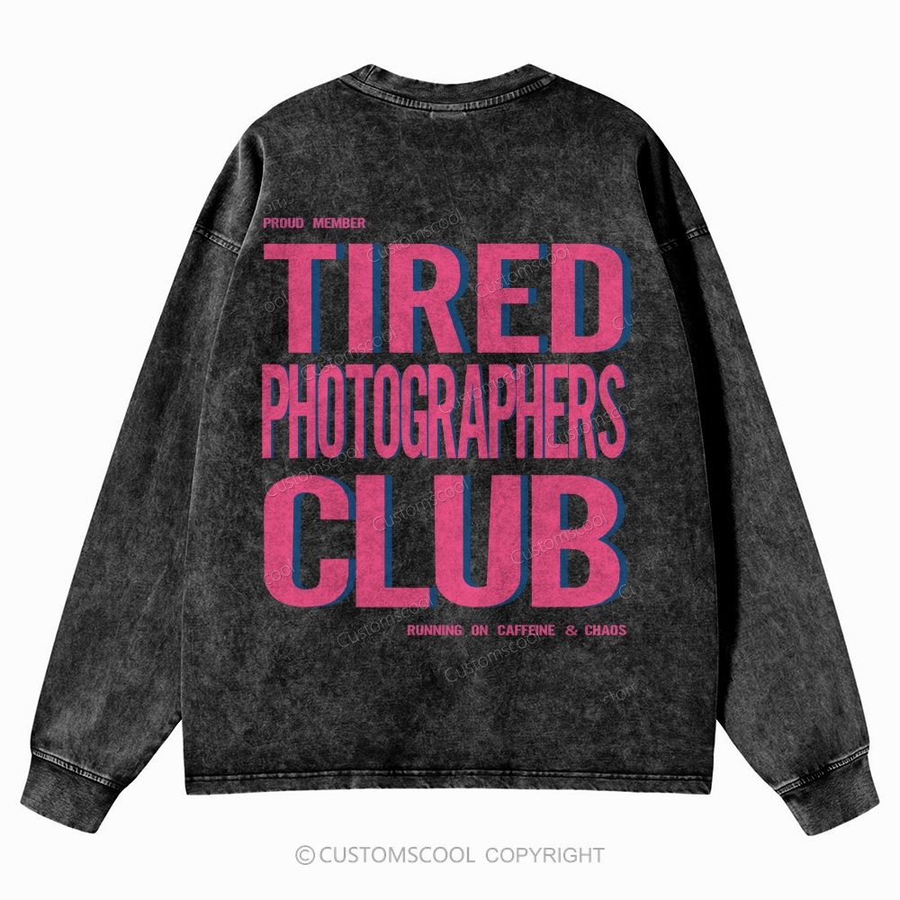 Tired Photographers Club Unisex Casual Washed Long-Sleeved T-Shirt Customscool