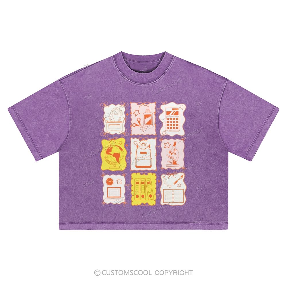 Teaching Bright Minds Embroidered Washed Cropped T-Shirt Customscool