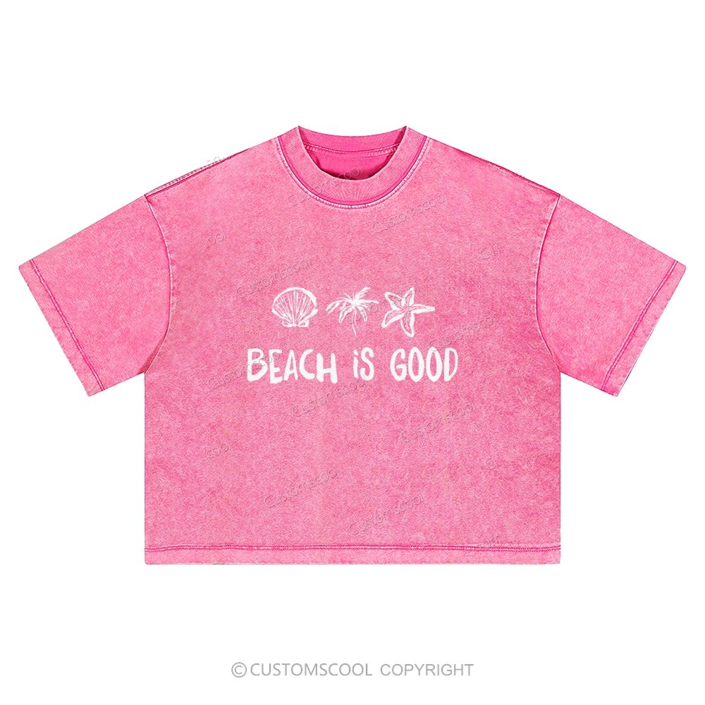 Beach Is Good Washed Cropped T-Shirt Customscool