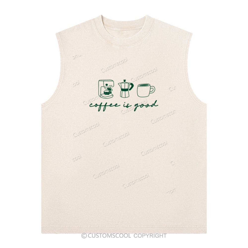 Coffee Is Good Unisex Washed Tank Top Customscool