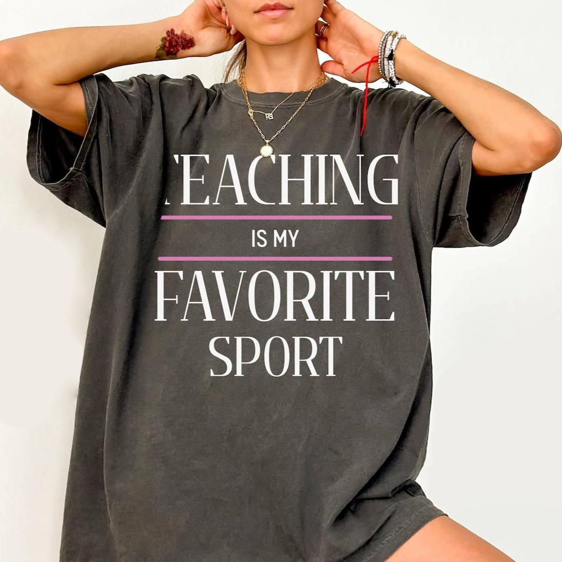 Teaching Is My Favorite Sport Unisex Fit Washed T-Shirt Customscool