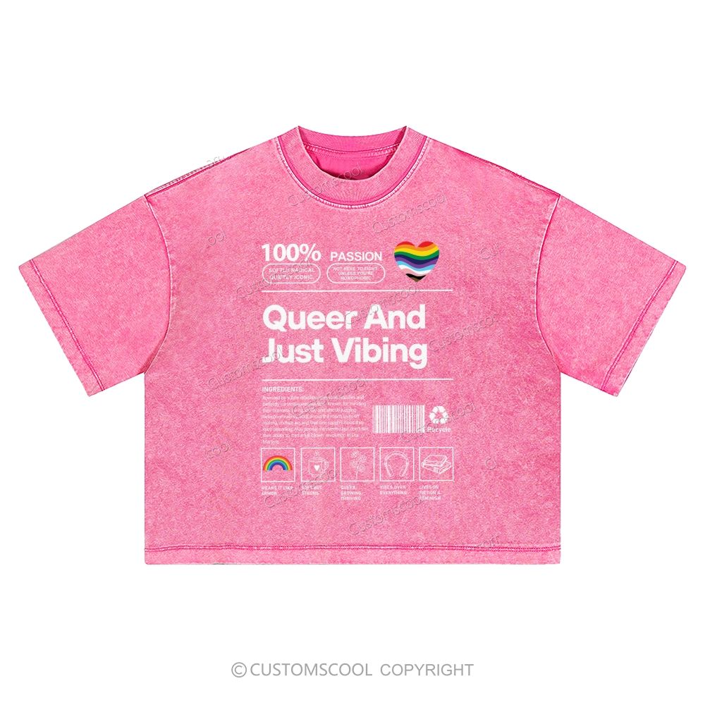 Queer And Just Vibing Washed Cropped T-Shirt Customscool