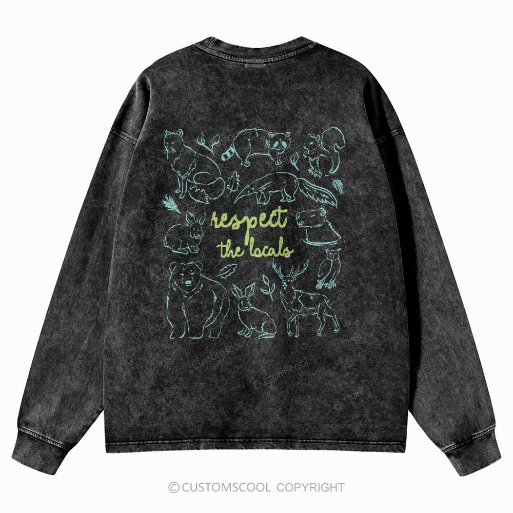 Respect The Locals Unisex Casual Washed Long-Sleeved T-Shirt Customscool