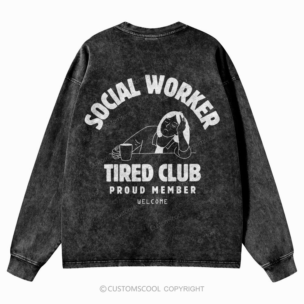Social Worker Tired Club Unisex Casual Washed Long-Sleeved T-Shirt Customscool