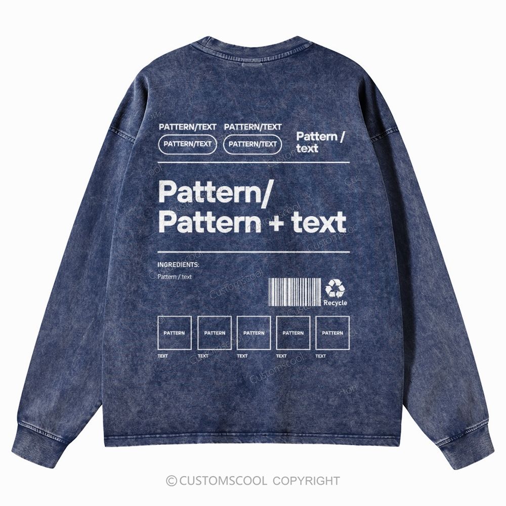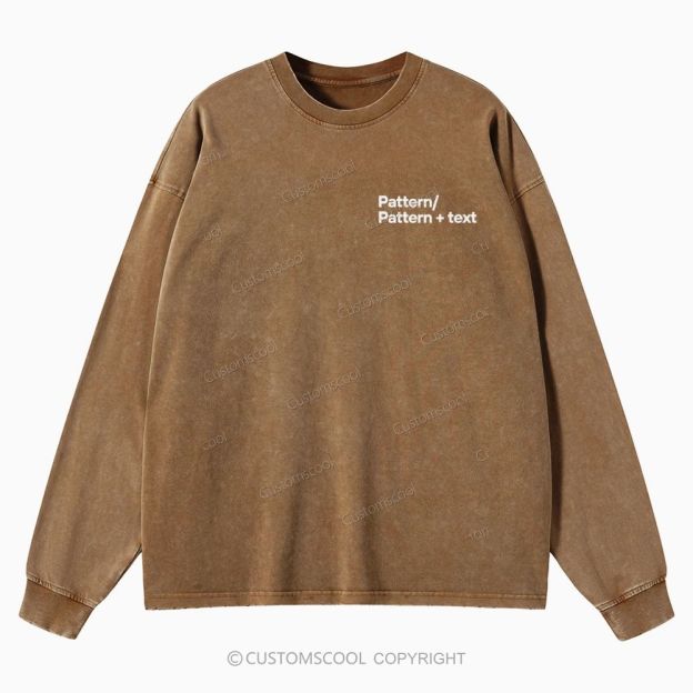 Addcustom Pattern or Pattern text Unisex Casual Washed Long-Sleeved T-Shirt Customscool