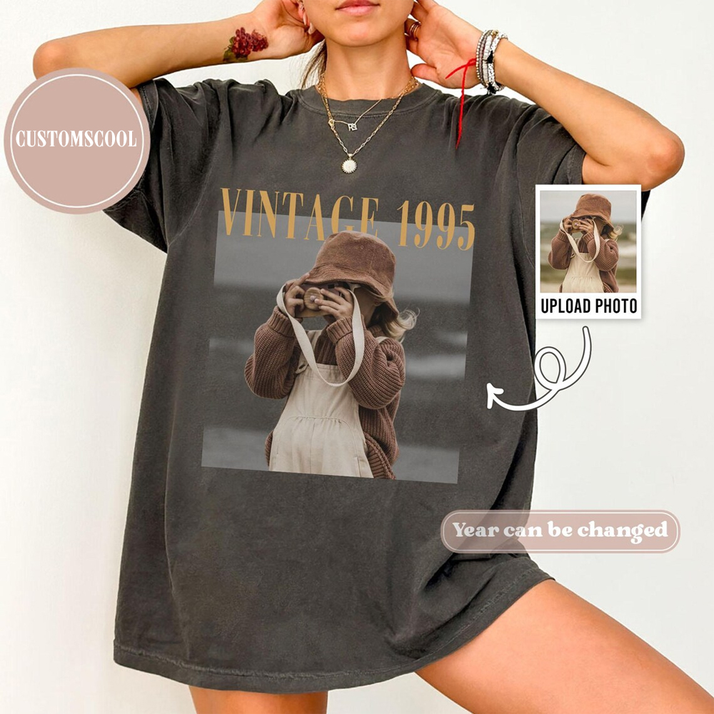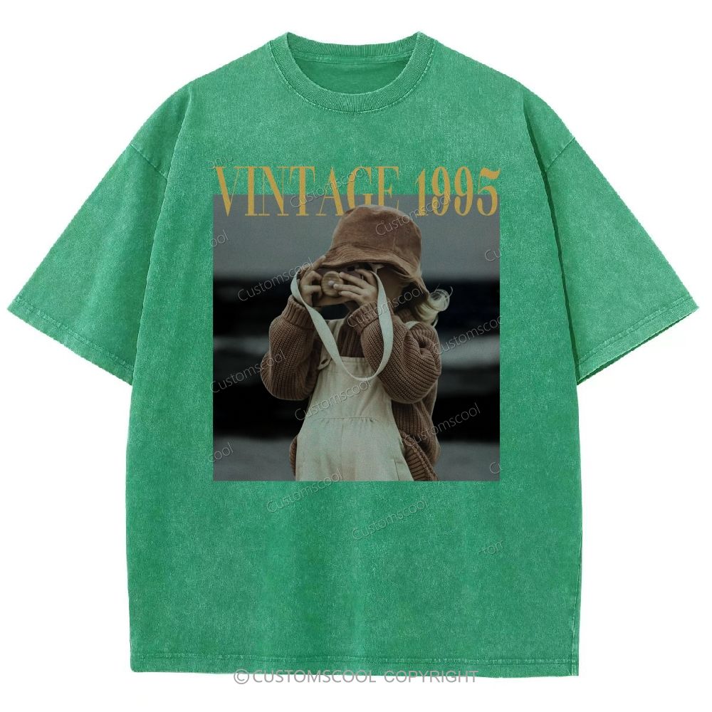 Addcustom Photo Year Vintage 1995 Unisex Fit Washed T-Shirt Customscool