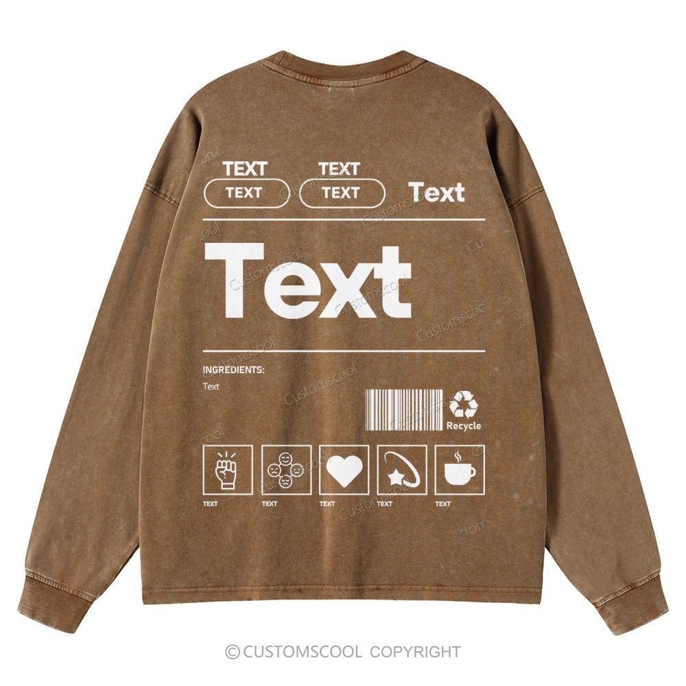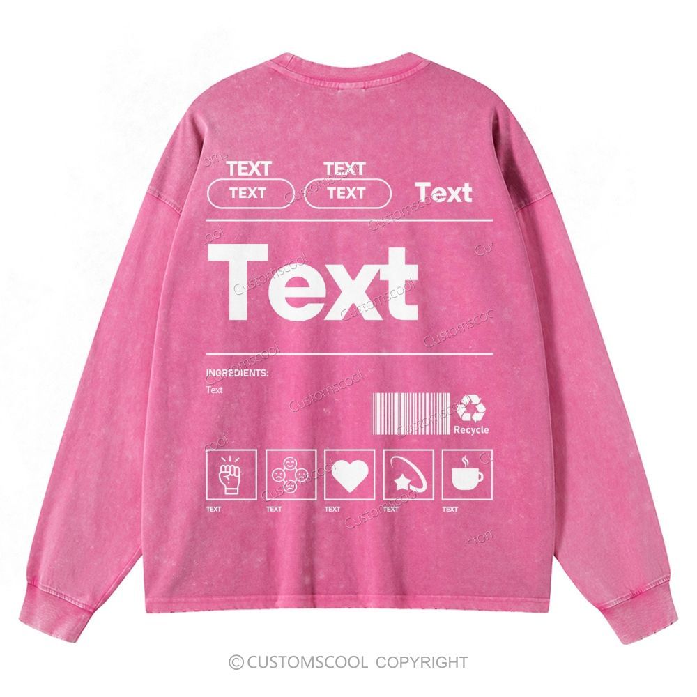 Addcustom Text Unisex Casual Washed Long-Sleeved T-Shirt Customscool