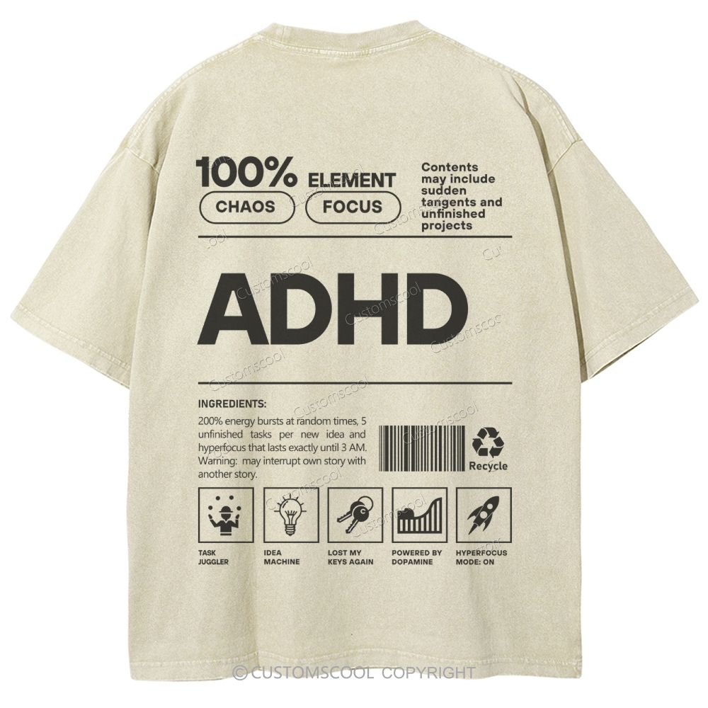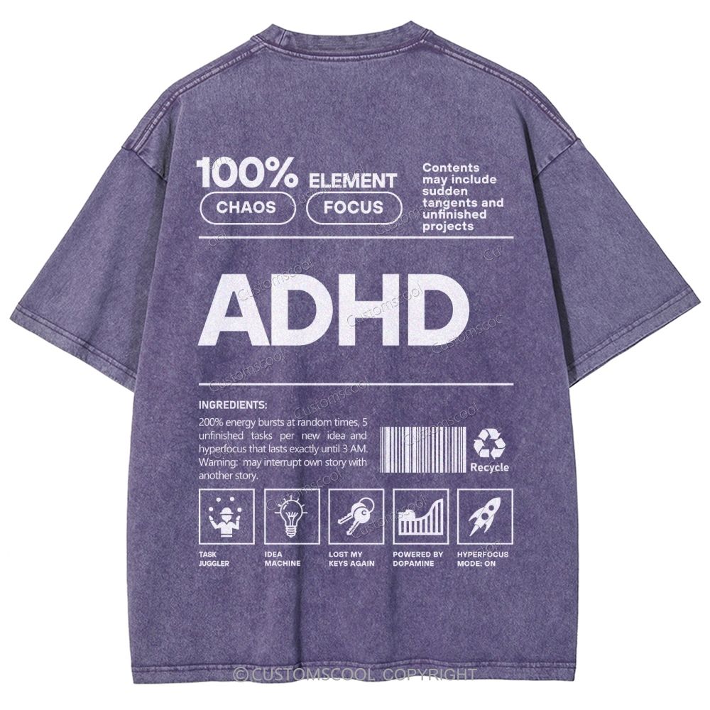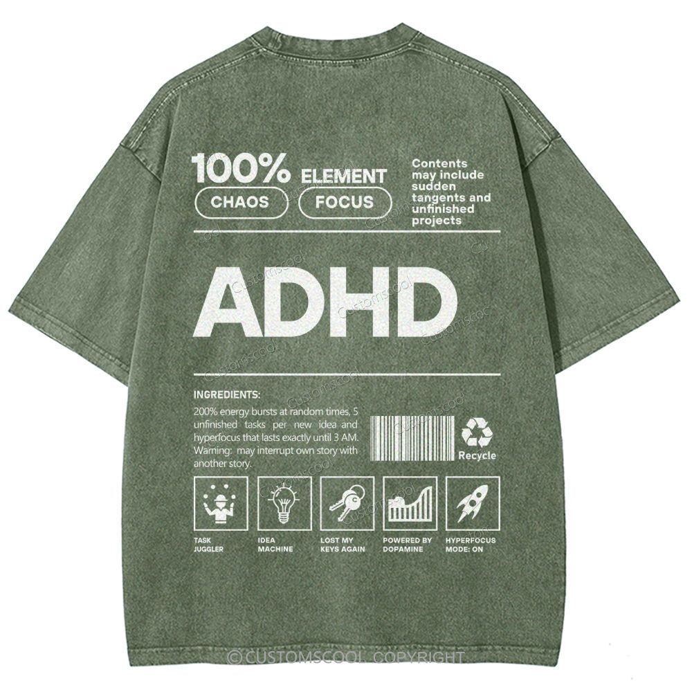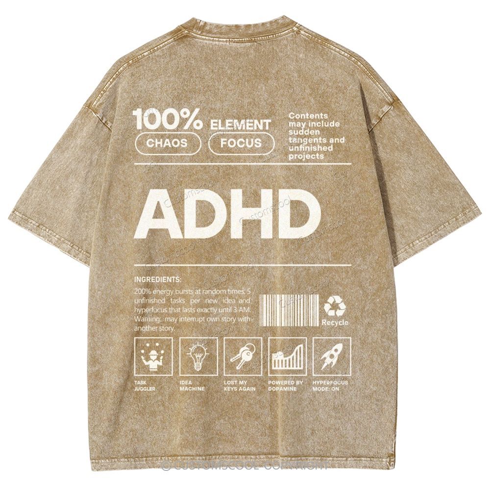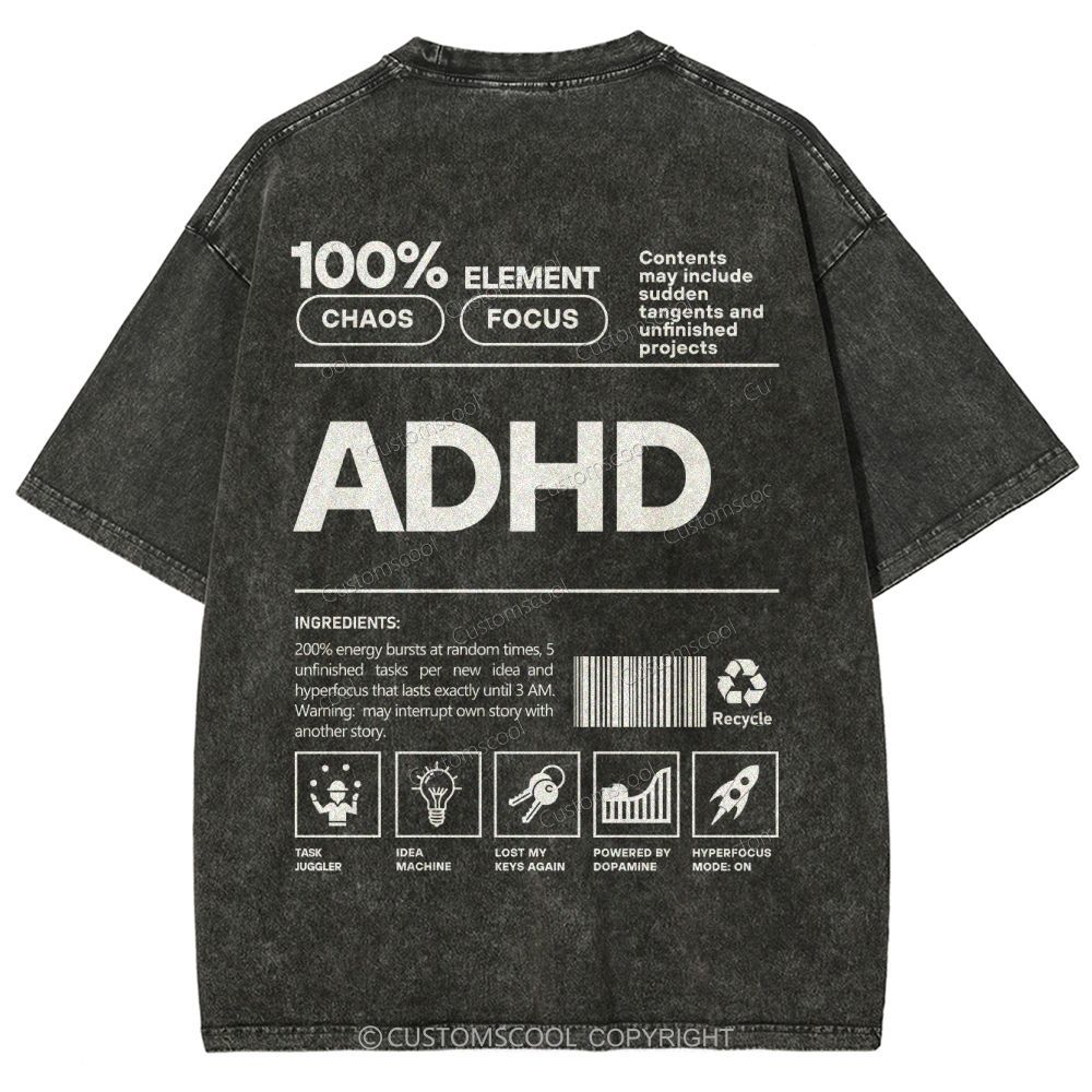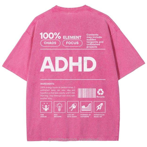 ADHD Unisex Fit Washed T-Shirt Customscool