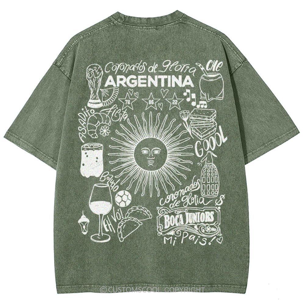 Argentina Unisex Fit Washed T-Shirt Customscool