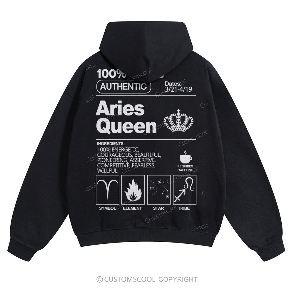 Aries Queen Solid Color Hoodie Customscool