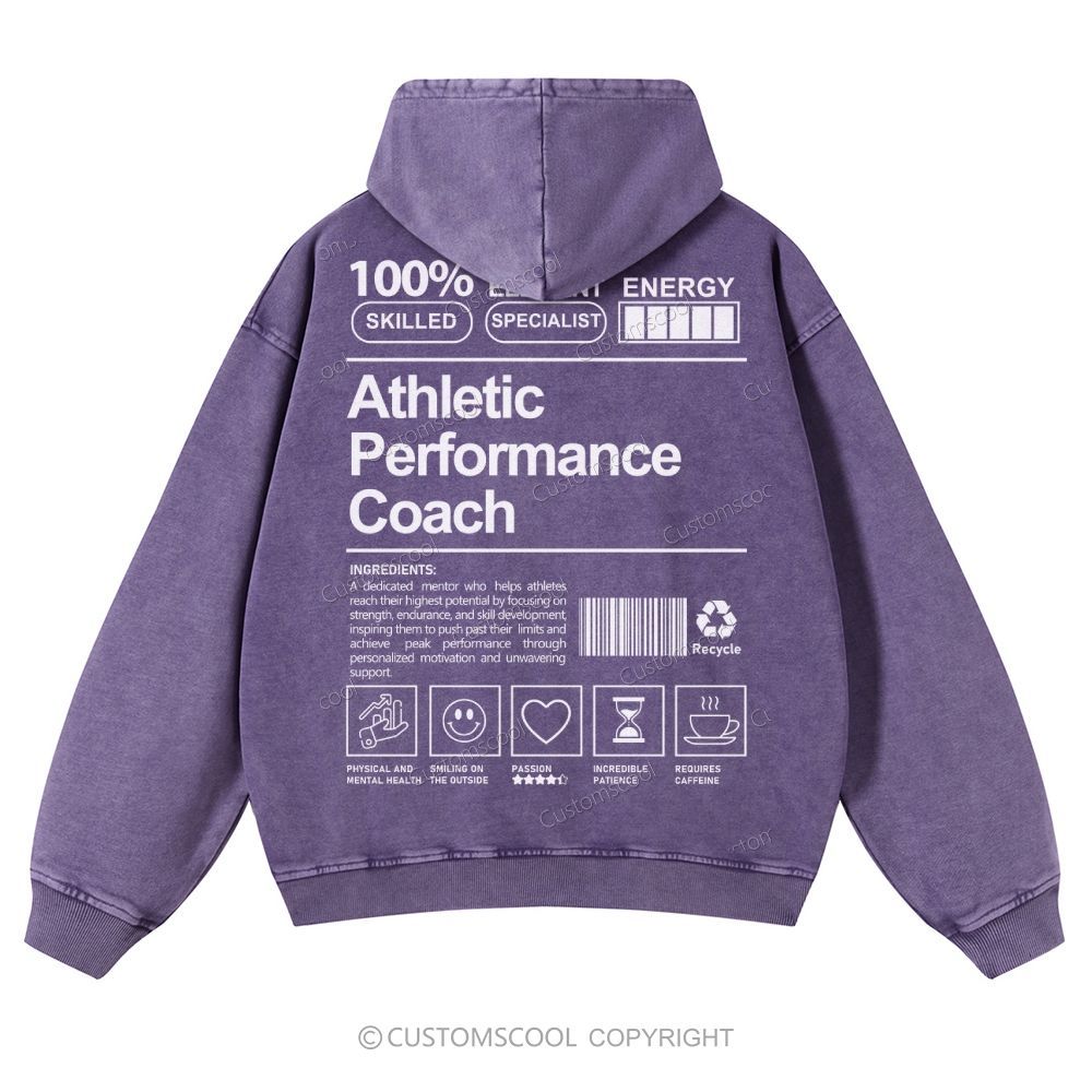 Athletic Performance Coach Casual Washed Hoodie Customscool