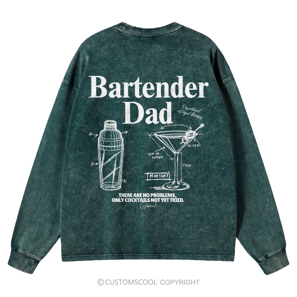 Bartender Dad Unisex Casual Washed Long-Sleeved T-Shirt