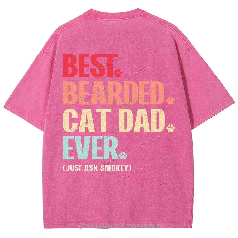 Best Bearded Cat Dad Ever Addcustom Cat Name Unisex Fit Washed T-Shirt Customscool