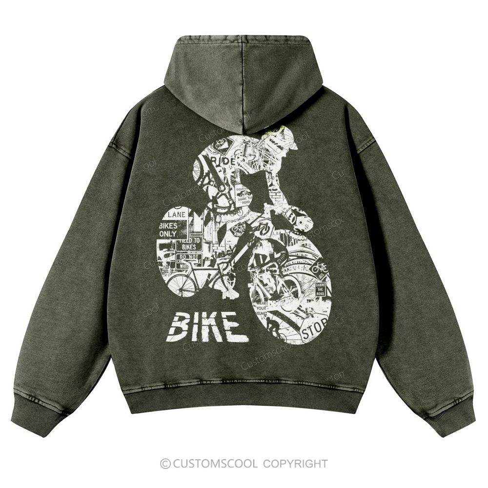 Bike Casual Washed Hoodie Customscool