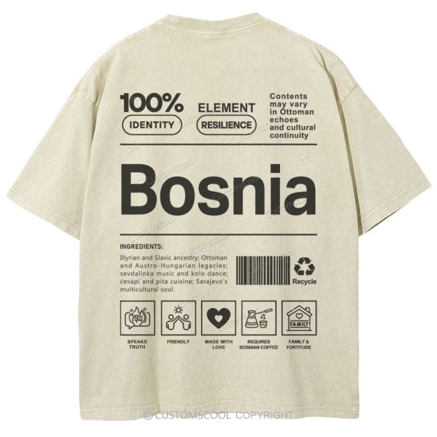 Bosnia Unisex Fit Washed T-Shirt Customscool