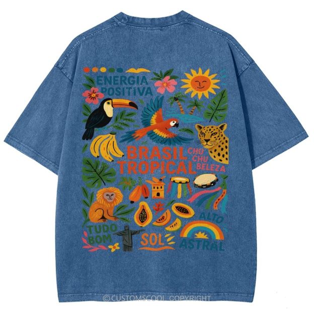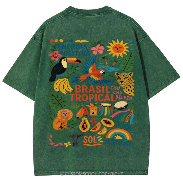 Brasil Tropical Unisex Fit Washed T-Shirt Customscool