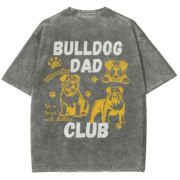 Bulldog Dad Club Unisex Fit Washed T-Shirt Customscool