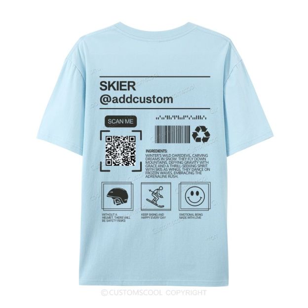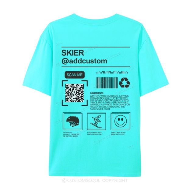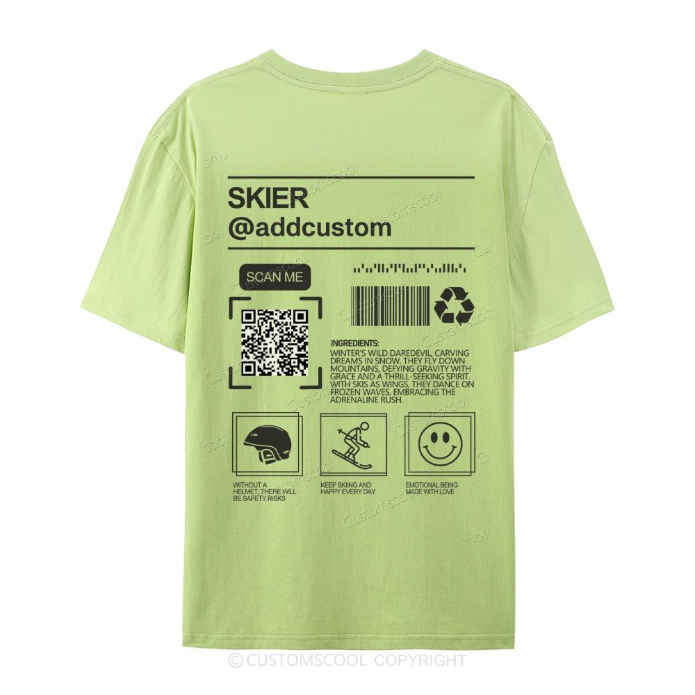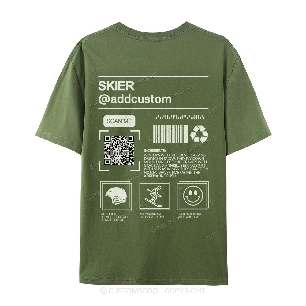 Skier Addcustom QR Code Name Casual Short Sleeve T-Shirt Customscool