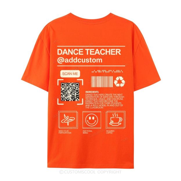Dance Teacher Addcustom QR Code Name Casual Short Sleeve T-Shirt Customscool
