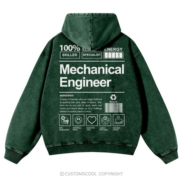 Mechanical Engineer Casual Washed Hoodie Customscool