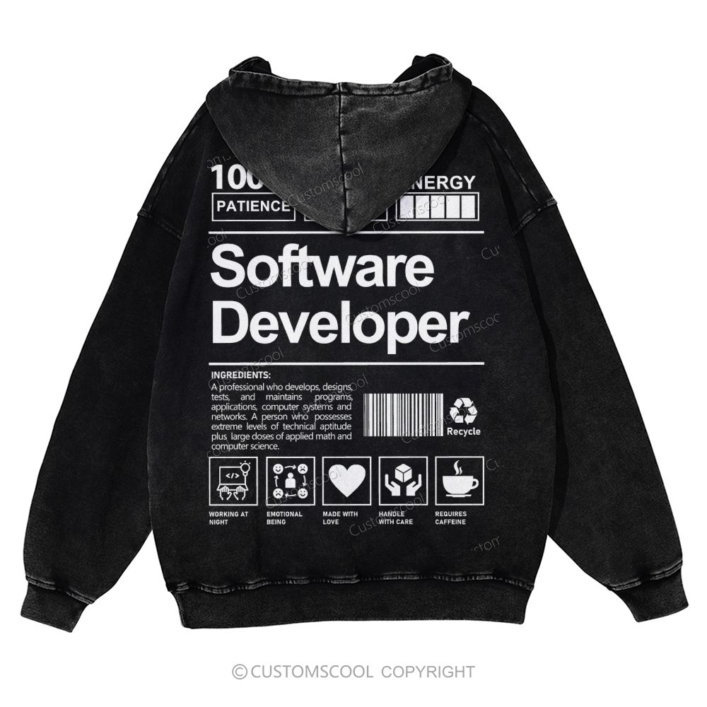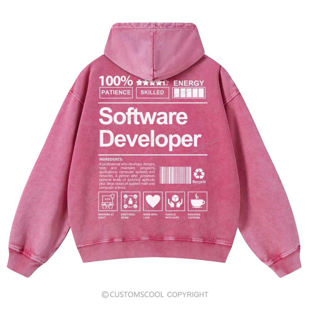 Software Developer Casual Washed Hoodie Customscool