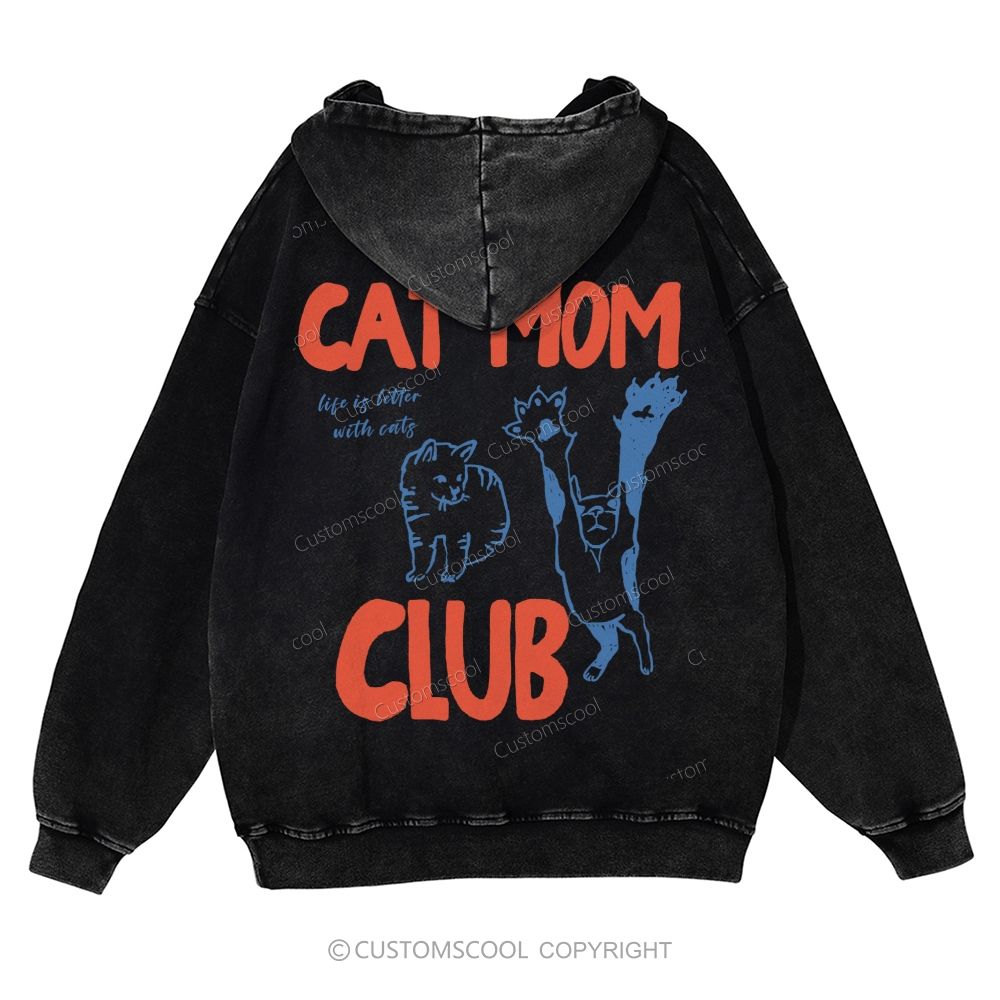 Cat Mom Club Casual Washed Hoodie Customscool