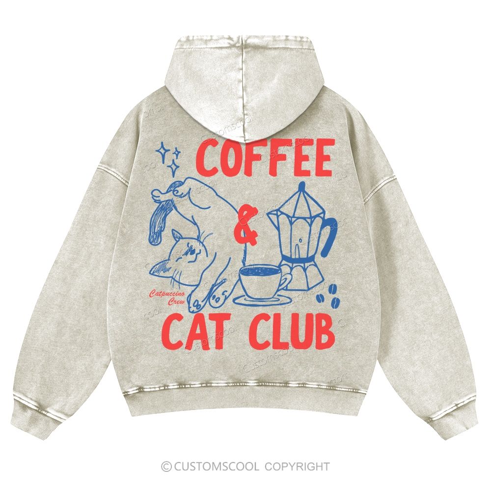 Coffee Cat Club Casual Washed Hoodie Customscool