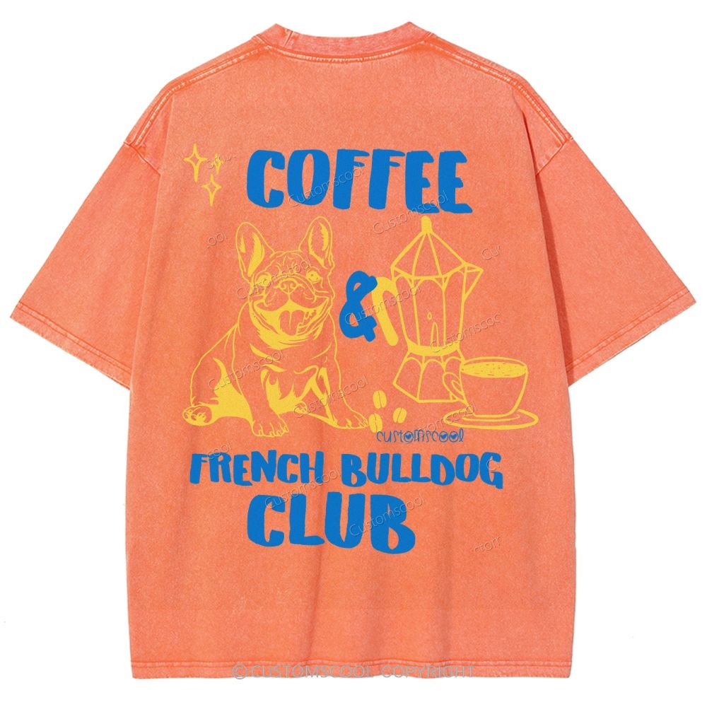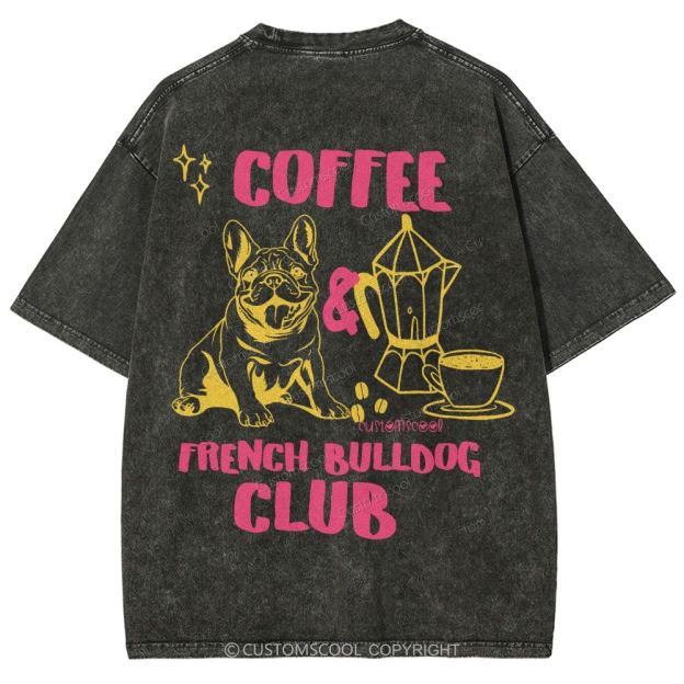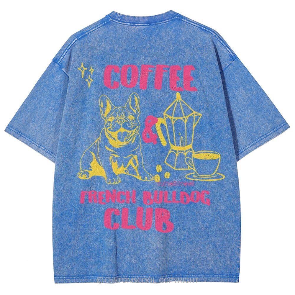 Coffee French Bulldog Club Unisex Fit Washed T-Shirt Customscool