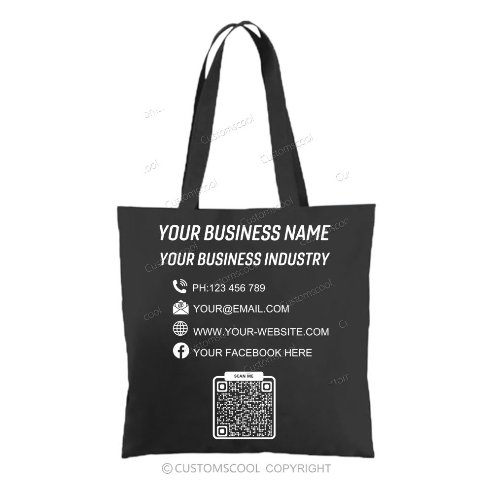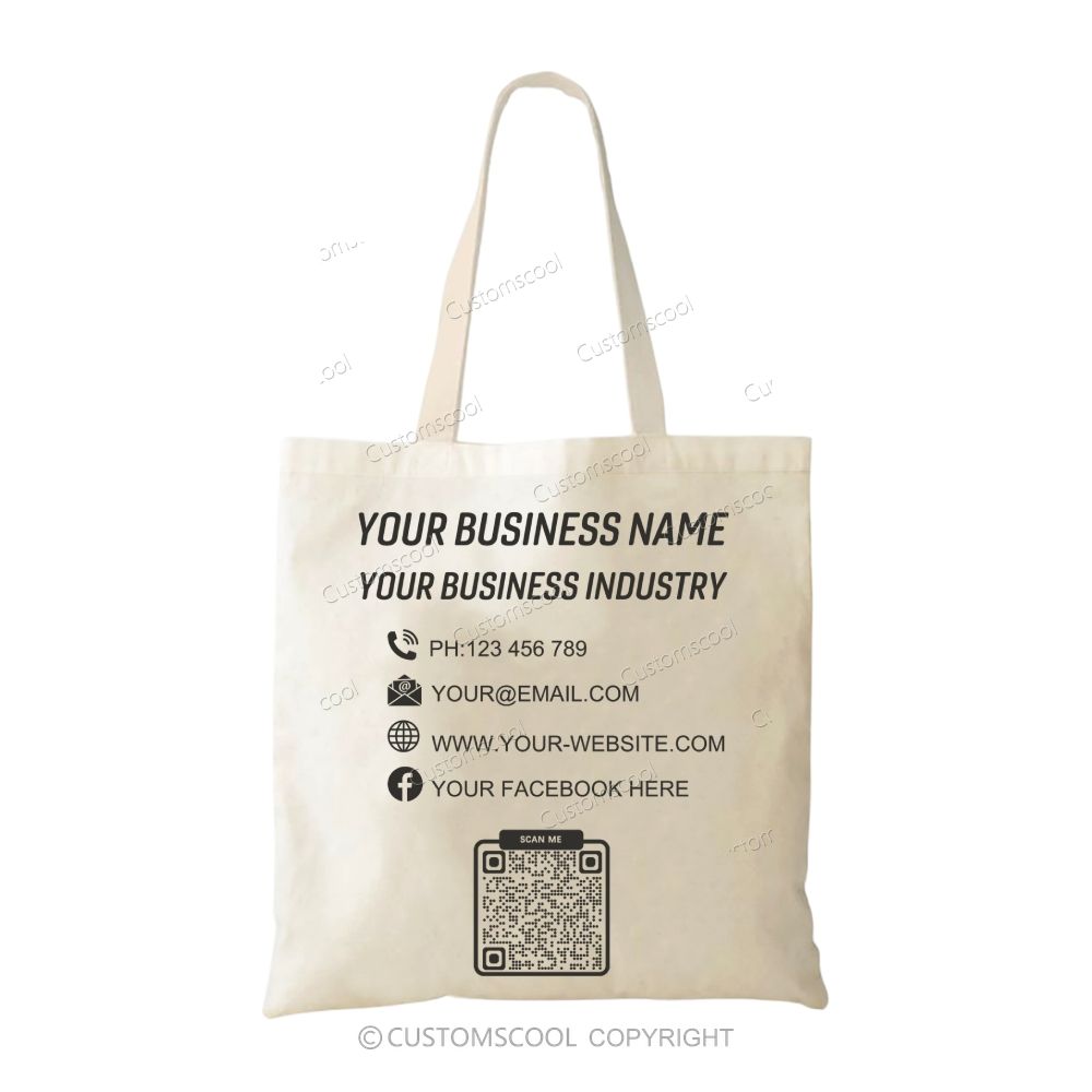 Customize Your Company Name, Business Industry, Phone Number, Email Address, Website, Facebook Page, Qr Code, And Information Tote Bag
