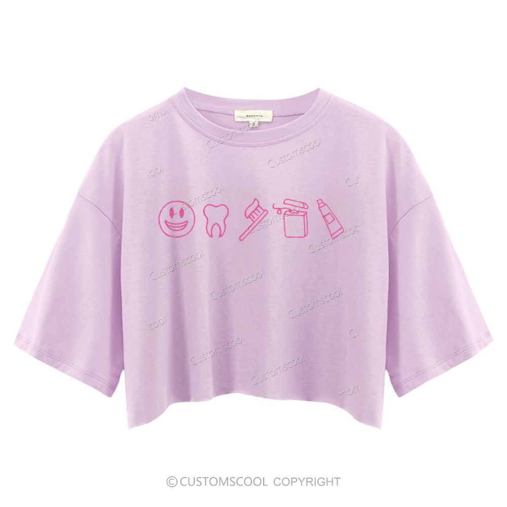 Dental Cute Icons Embroidered Crop Tops Customscool