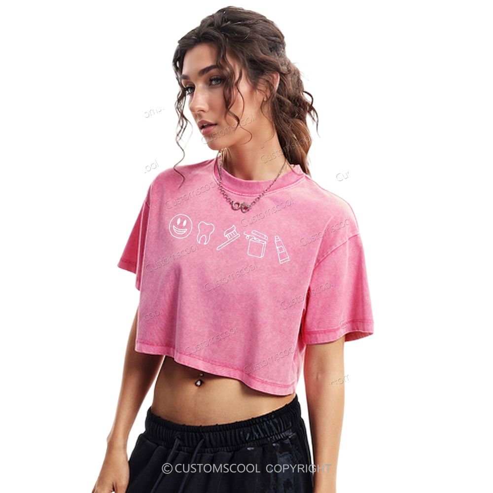 Dental Cute Icons Embroidered Washed Cropped T-Shirt Customscool