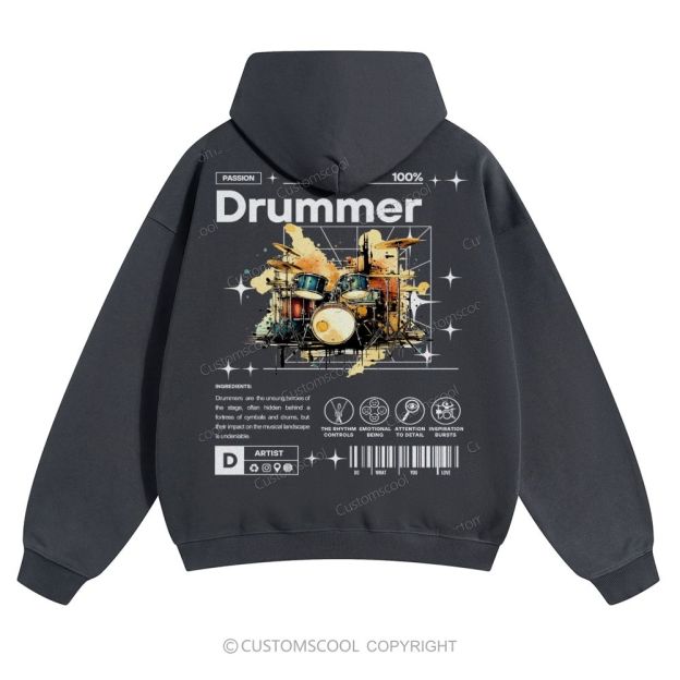Drummer Solid Color Hoodie Customscool