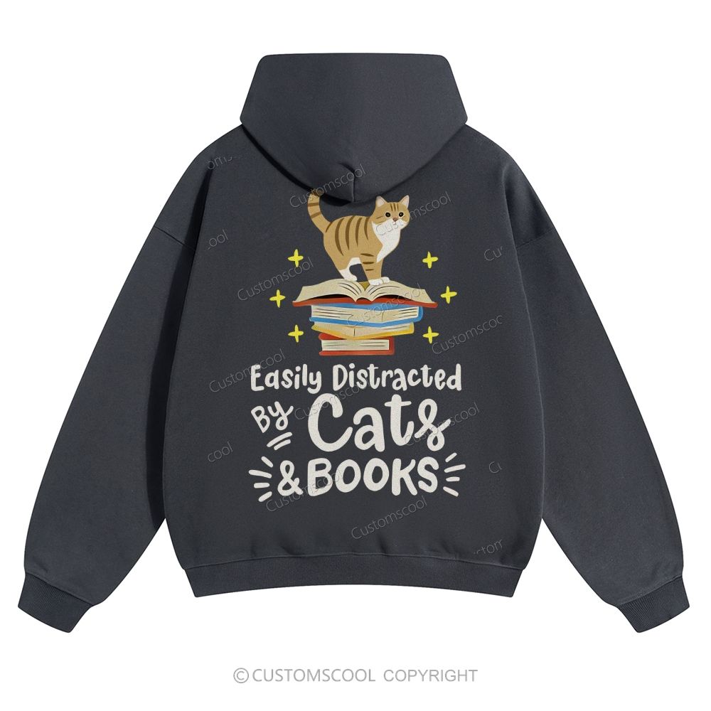 Easily Distracted By Cat & Books Solid Color Hoodie Customscool