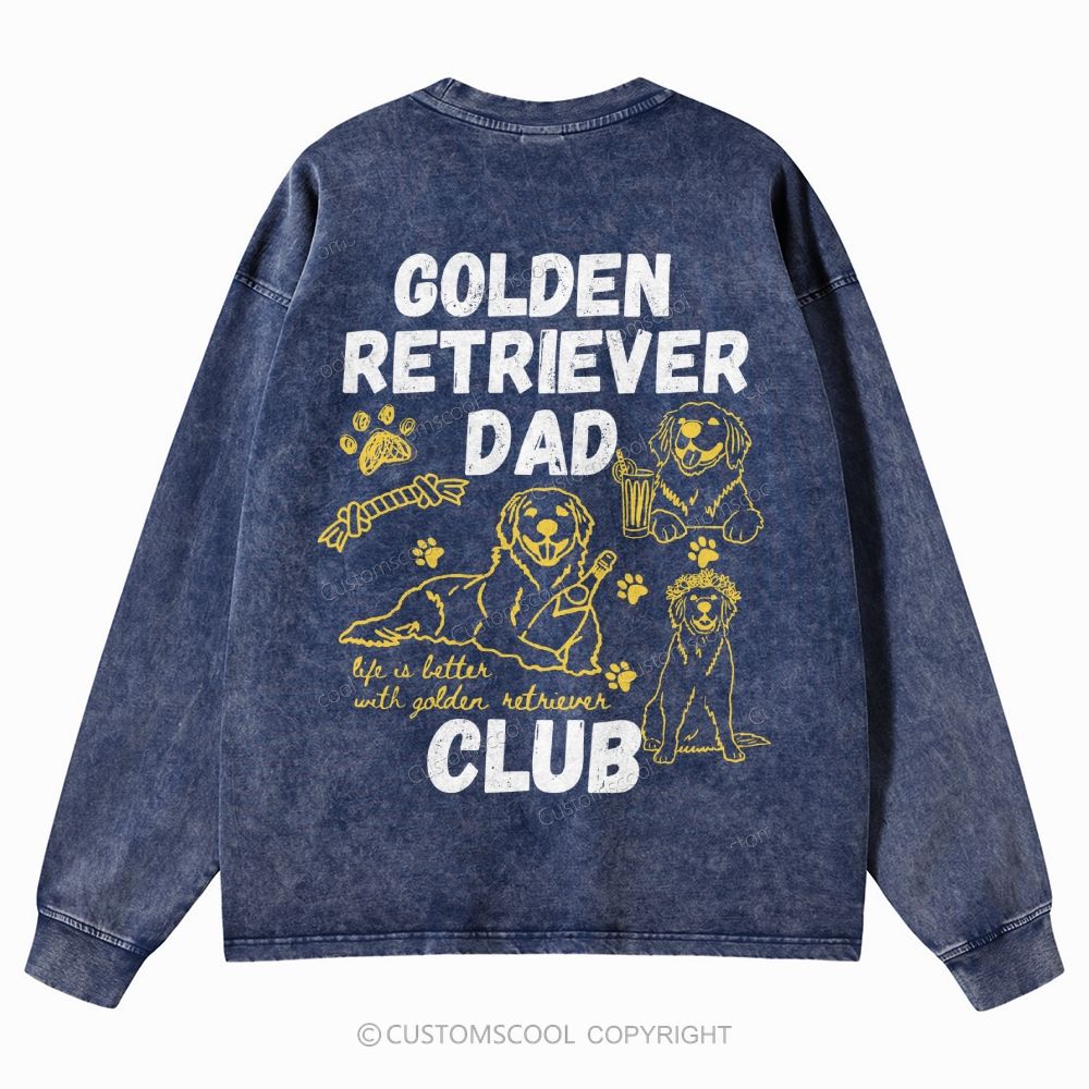 Golden Retriever Dad Club Unisex Casual Washed Long-Sleeved T-Shirt