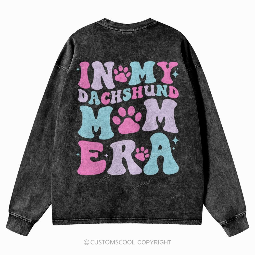 In My Dachshund Mom Era Unisex Casual Washed Long-Sleeved T-Shirt Customscool