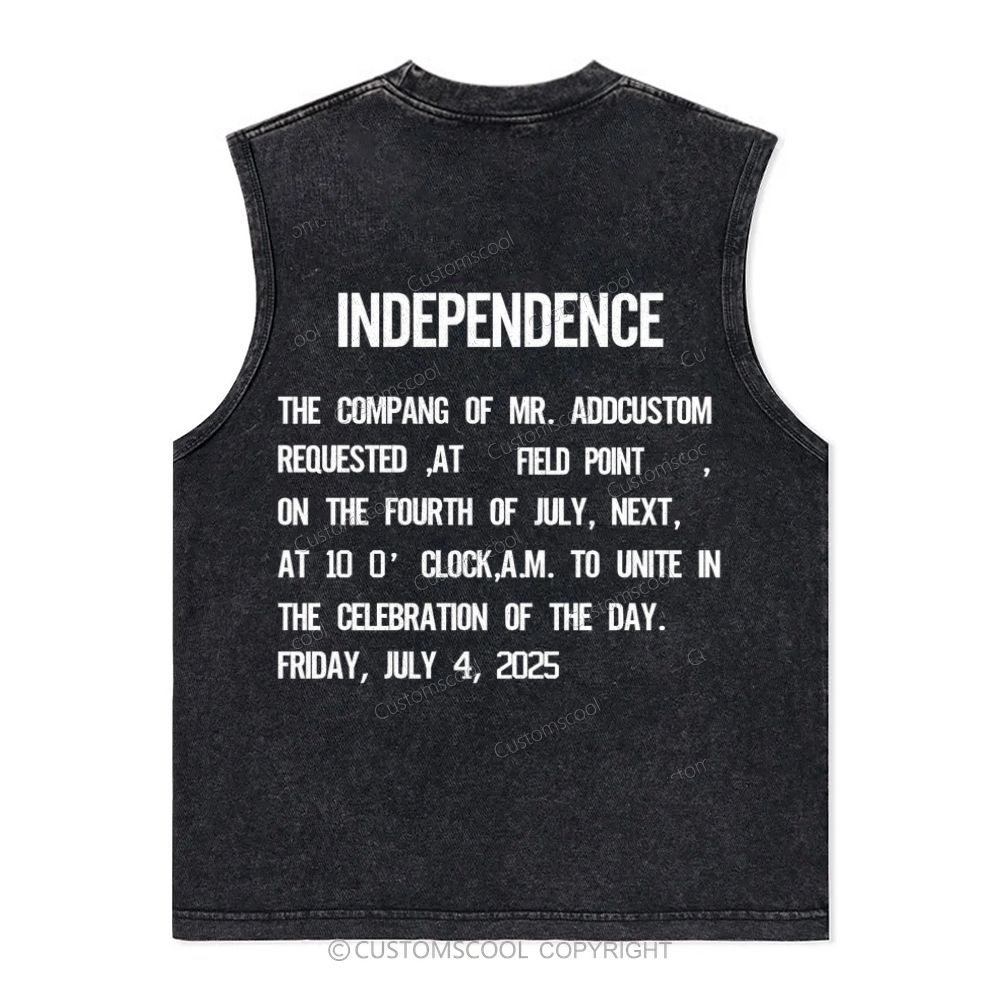 Independence Day Invitation Card To Add Customization Name Time And Location Unisex Washed Tank Top Customscool
