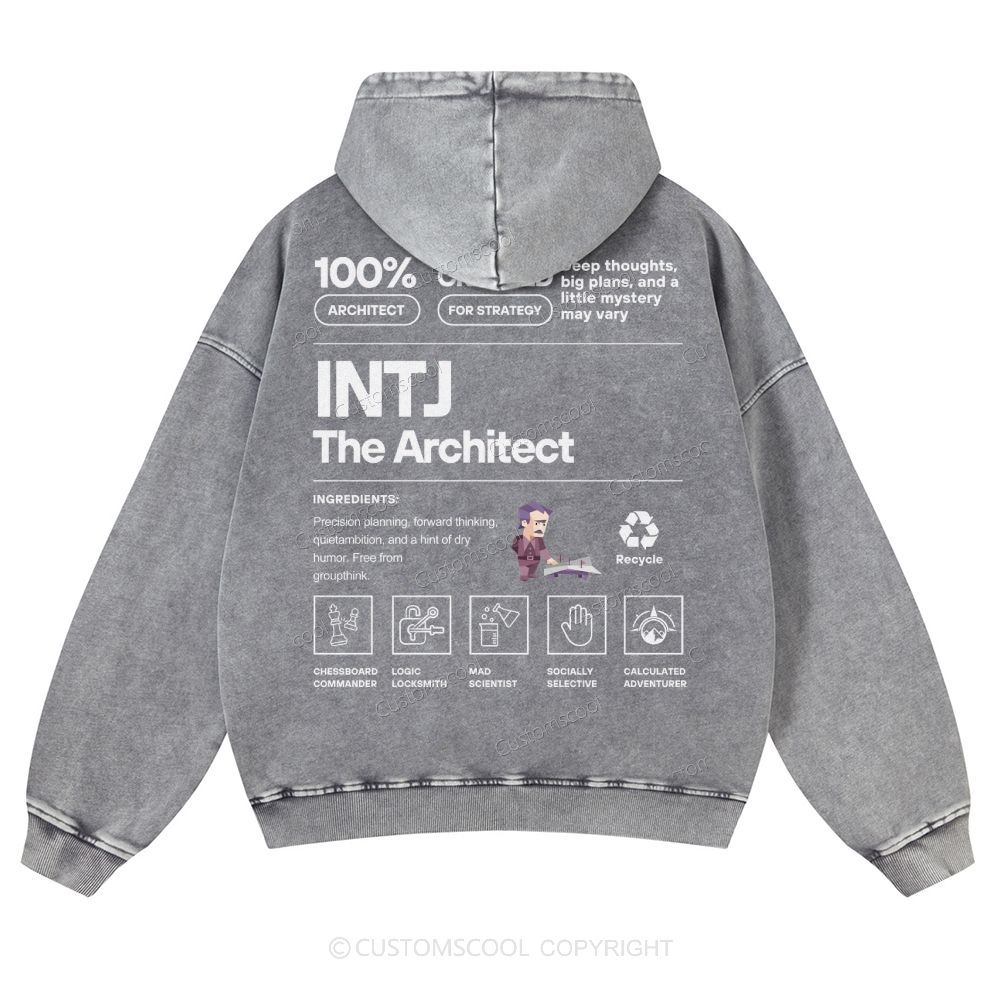 INTJ The Architect Casual Washed Hoodie Customscool