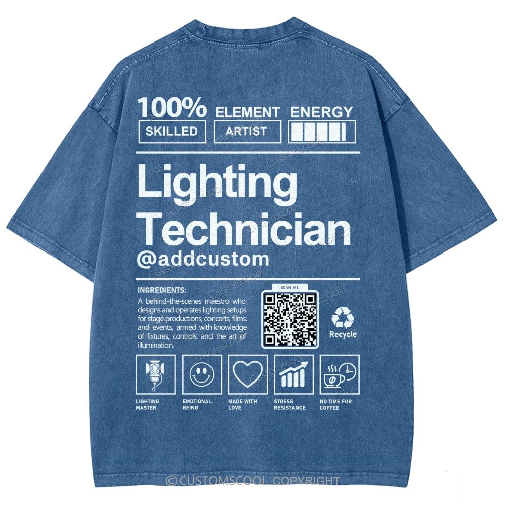 Lighting Technician Addcustom QR Code Unisex Fit Washed T-Shirt Customscool