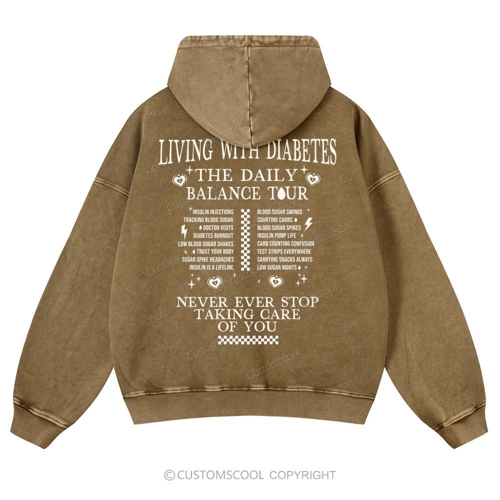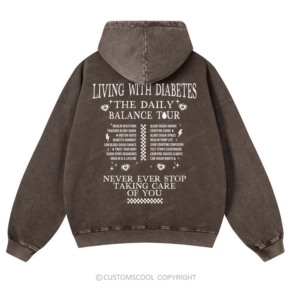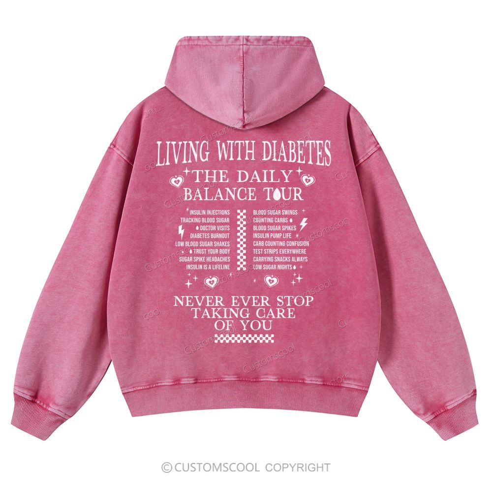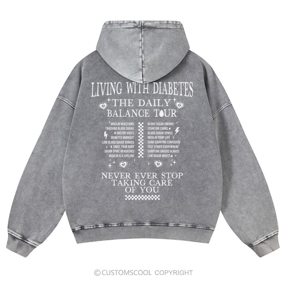 Living With Diabetes The Daily Balance Tour Casual Washed Hoodie Customscool