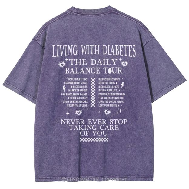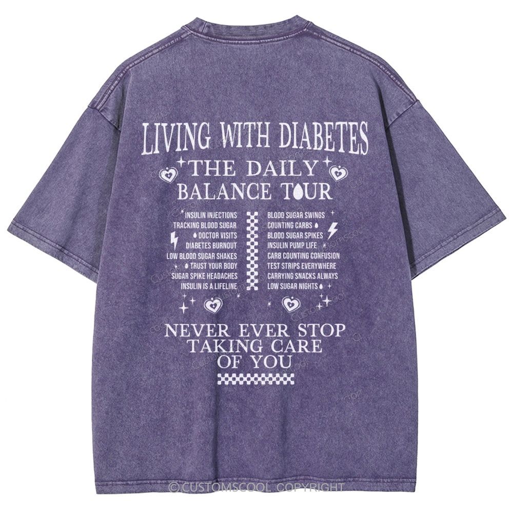 Living With Diabetes The Daily Balance Tour Unisex Fit Washed T-Shirt Customscool