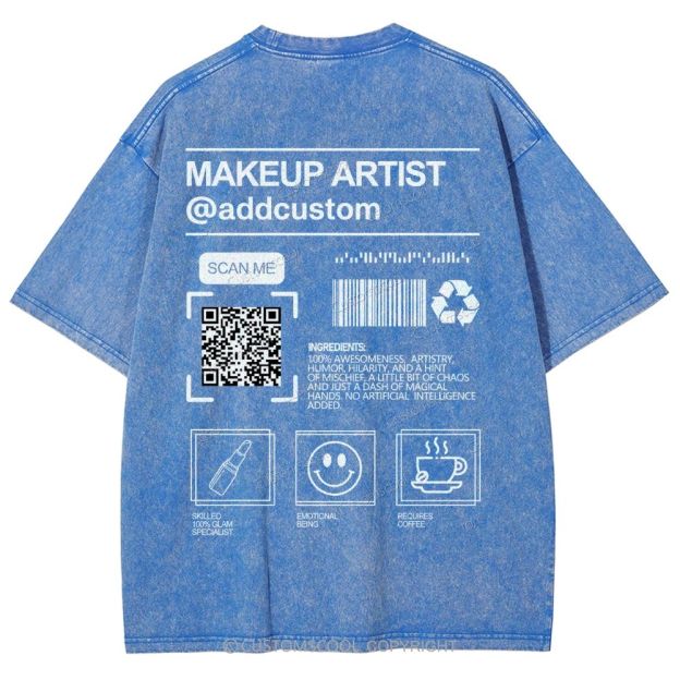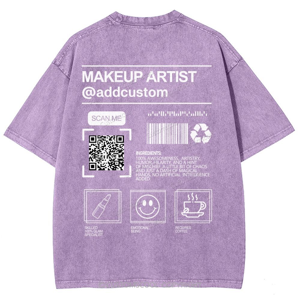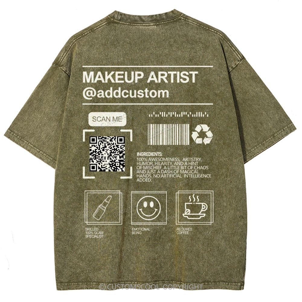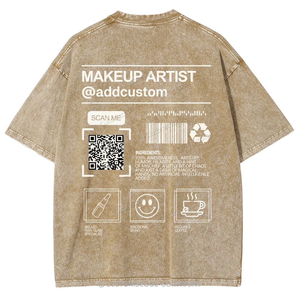Makeup Artist Addcustom QR Code Name Unisex Fit Washed T-Shirt Customscool