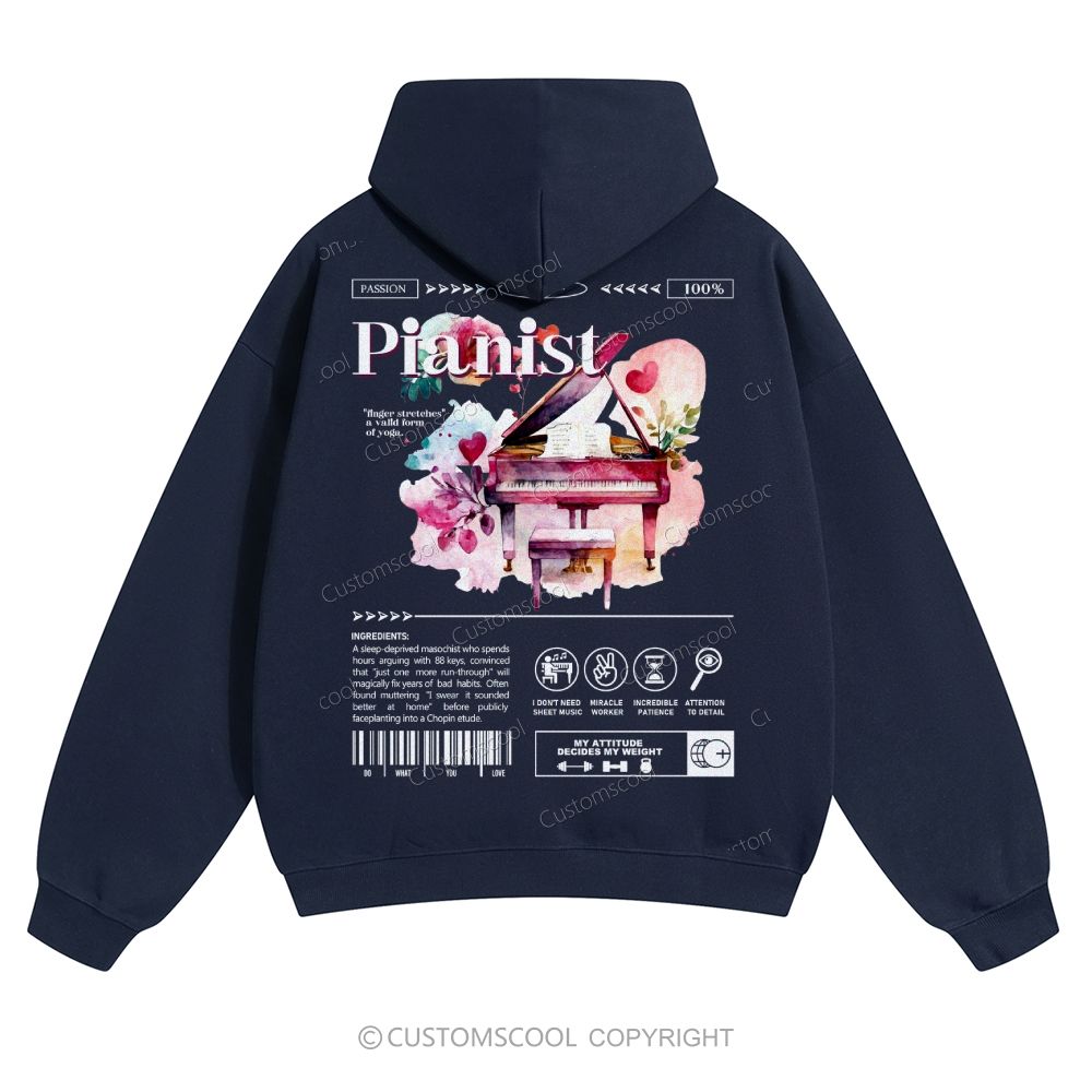 Pianist Solid Color Hoodie Customscool