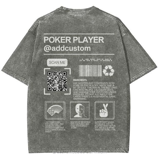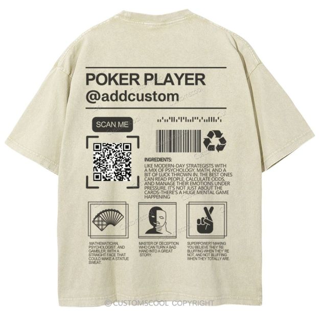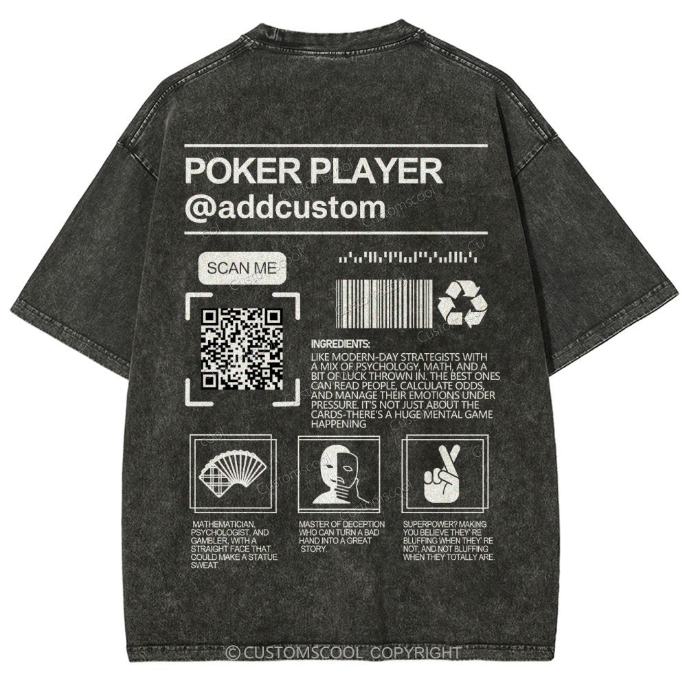 Poker Player Addcustom QR Code Name Unisex Fit Washed T-Shirt Customscool