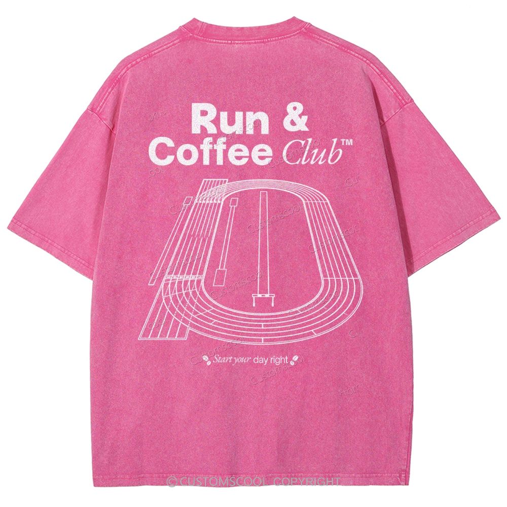 Run & Coffee Club Unisex Fit Washed T-Shirt Customscool